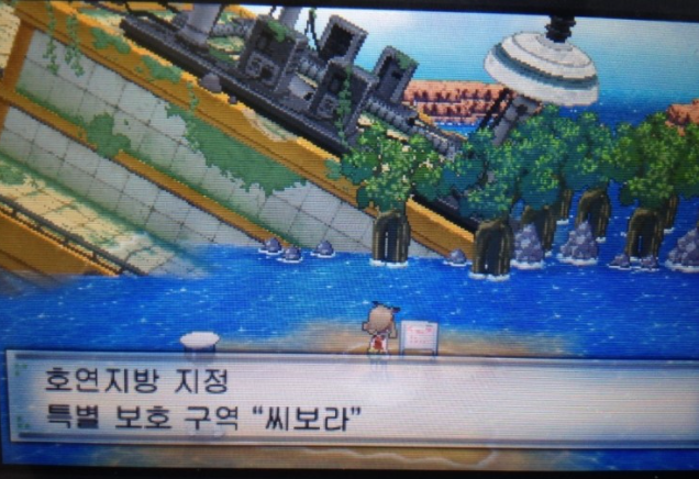 이렇게 포켓몬 게임상 지도와 규슈지방을 오른쪽으로 90도 돌린 지도의 형태가 아주 비슷하다는 것을 알수 있다. 지도에 동그랗게 표시된 위치가 바로 우리가 알고 있는 군함도의 위치다. 포켓몬 루비&사파이어 지도상에서는 108번 수로 - 씨보라 라는 지역이다.