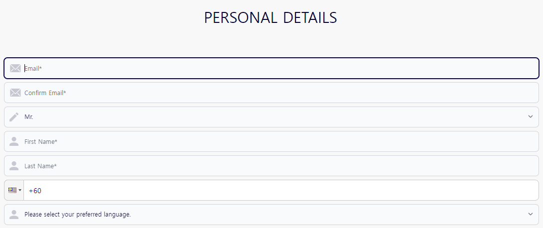 필수 입력 항목인 이메일, 성별, 성명, 전화번호를 입력하고 넘어가 주세요.