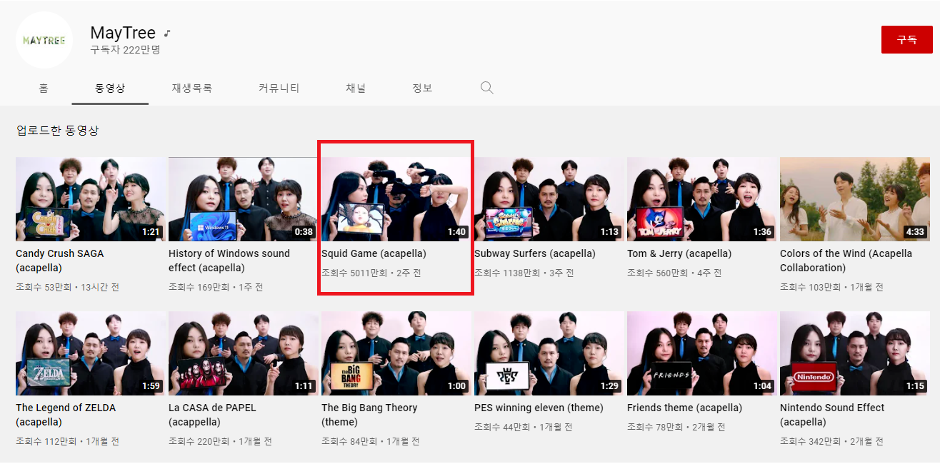 원래도 구독자가 많았는데 오징어게임 ost를 커버하고 난리가 나서 조회수 5천만을 돌파해버렸어요ㄷㄷ