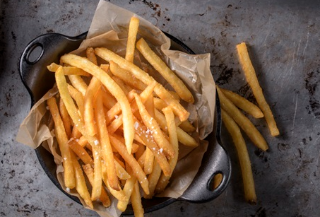 감자튀김에는 아크릴아마이드라는 발암물질이 생성되어 있기 때문에 주의가 필요하다.