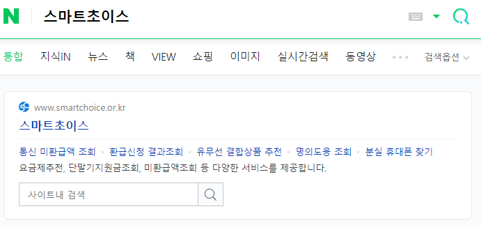 본인의 폰이 선택약정 가입이 가능한지 확인이 필요합니다. 우선 검색창에 '스마트초이스'라고 검색을 합니다.