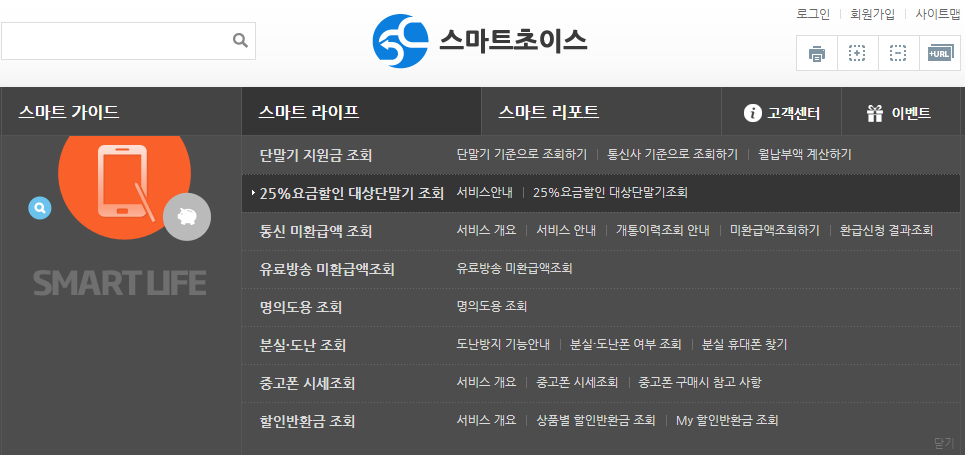 스마트초이스 홈페이지 화면에서 스마트라이프를 선택합니다.