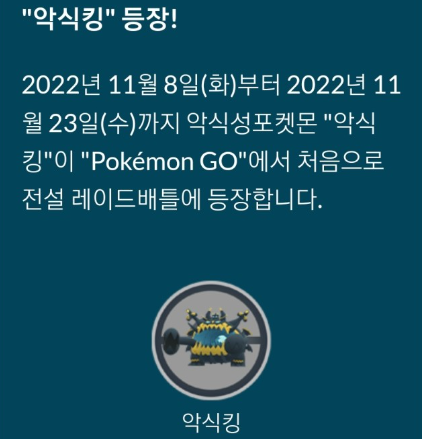 포켓몬고 악식킹이 11월8일부터 11월23일까지 5성 레이드로 등장합니다. 7세대 전설 포켓몬으로 등장하는 포켓몬 중 하나 입니다.