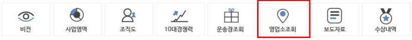 홈페이지에서 중앙에 보이는 메뉴 중 영업소조회가 있습니다.