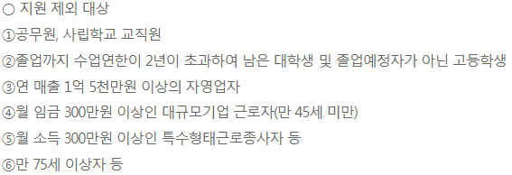 다만, 일부 지원제외 대상이 있으니 아래 내용 참고하셔서 자신이 해당하는지 확인 바랍니다.