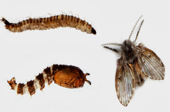 나방파리는 화장실 혹은 고인 물에 자주 서식하는데 알을 낳으면 보통 30~100개의 알을 낳고 약 48시간 만에 부화하여 버섯균이나 박테리아 등을 섭취하면서 성장하게 됩니다.