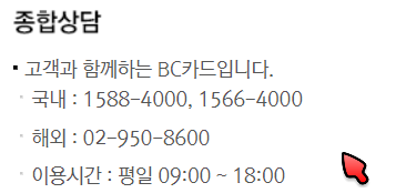 BC카드 고객센터 전화번호 안내