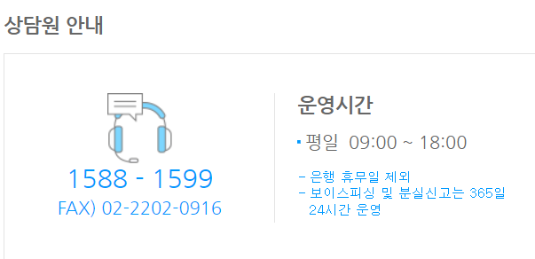 그럼 전화 상담을 이용할때 ARS 번호를 알아보도록 하겠습니다. 보이스피싱이나 분실신고의 경우에는 1번을 이용하시면 되구요 담보대출은 2번을 이용하시면 됩니다. 그리고 신용대출은 3번 서비스를 이용하시면 되구요 장기 대출이나 카드문의 관련된 것은 4번을 이용하시면 됩니다. 그리고 예금이나 펀드 보험 관련된 문의는 5번을 이용하시면 되구요 모바일이나 인터넷 뱅킹은 6번을 이용하시면 됩니다. 외환 관련된 업무 문의는 7 번을 이용하시면 되구요 중소기업 고객은 8 번을 이용하시면 됩니다. 어르신 고객은 9 번을 이용하시면 됩니다.